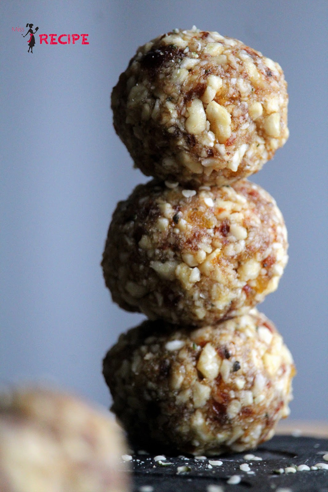 Put all the ingredients in a food processor and pulse until it forms a dough ball (add a tbsp of water if a ball didn't form well). Roll balls into your hands and refrigerate for an hour.